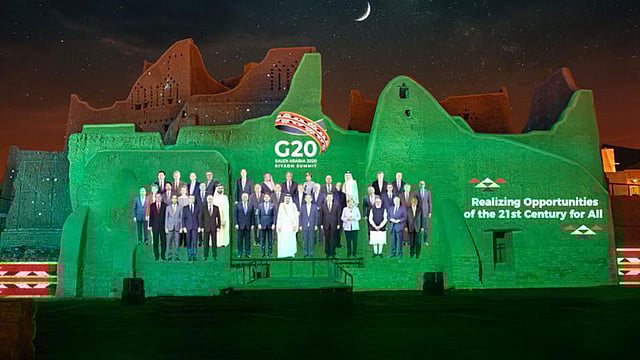 زينت الصورة التاريخية لقادة دول مجموعة العشرين، حي الطريف التاريخي في قلب الدرعية عاصمة الدولة السعودية الأولى.