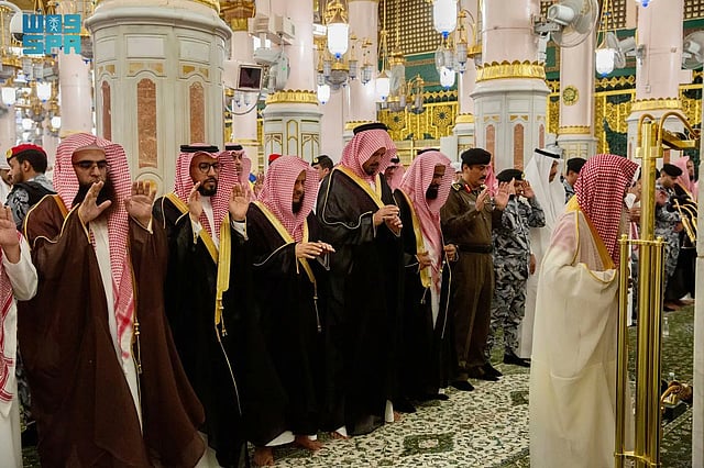 كما أدى جموع المصلين بالمسجد النبوي اليوم، صلاة الغائب على سماحة مفتي عام المملكة، رئيس هيئة كبار العلماء الشيخ عبدالعزيز بن عبدالله بن محمد آل الشيخ -رحمه الله-.