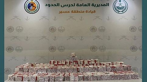 أحبطت الدوريات البرية لحرس الحدود في قطاع الربوعة، بمنطقة عسير، تهريب 279,000 قرص خاضع لتنظيم التداول الطبي.