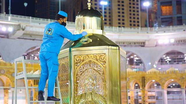 قامت الإدارة العامة للشؤون الفنية والخدمية التابعة لوكالة الشؤون الفنية والخدمية بالرئاسة العامة لشؤون المسجد الحرام والمسجد النبوي بأعمال التطهير والتلميع للإطار الخارجي لمقام إبراهيم -عليه السلام- ضمن مبادرة «معا محترزون».