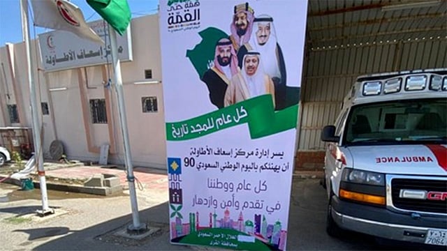 كما زيّنت الهيئة مقراتها بالمنطقة والمراكز الإسعافية بالمحافظات احتفالًا باليوم الوطني ورفع جاهزيتها على مدار الساعة من خلال غرفة العمليات 997 أو تطبيق «أسعفني».