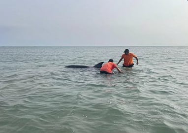 أعادت فرق البحث والإنقاذ بحرس الحدود في محافظة القنفذة بمنطقة مكة المكرمة دلفينا إلى البحر بعد أن جرفته الأمواج إلى الشاطئ، وذلك بالتعاون مع المركز الوطني لتنمية الحياة الفطرية.