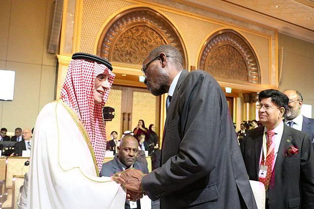 وبعد الجلسة الافتتاحية لاجتماع مجلس وزراء خارجية الدول الأعضاء بمنظمة التعاون الإسلامي، توجّه رؤساء الوفود إلى جامع الشيخ زايد الكبير لأداء صلاة الجمعة، ثم شرف وزير الدولة للشؤون الخارجية عضو مجلس الوزراء عادل الجبير، مأدبة غداء بضيافة الشيخ عبدالله بن زايد وزير الخارجية الإماراتي، ثم ألقى الجبير كلمة المجموعة العربية في الاجتماع الوزاري لمنظمة التعاون الإسلامي في الدورة السادسة والأربعين، أكد خلالها موقف المجموعة العربية الداعم للحق الفلسطيني في إقامة دولته المستقلة على حدود 1967 وعاصمتها القدس الشرقية.