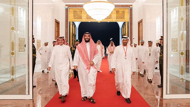 وكان في وداع سمو ولي العهد لدى مغادرته مطار الرئاسة بأبوظبي الشيخ محمد بن زايد آل نهيان ولي عهد أبوظبي نائب القائد الأعلى للقوات المسلحة، وسمو الشيخ طحنون بن زايد آل نهيان مستشار الأمن الوطني، وسفير خادم الحرمين الشريفين لدى دولة الإمارات تركي الدخيل وعدد من المسؤولين.