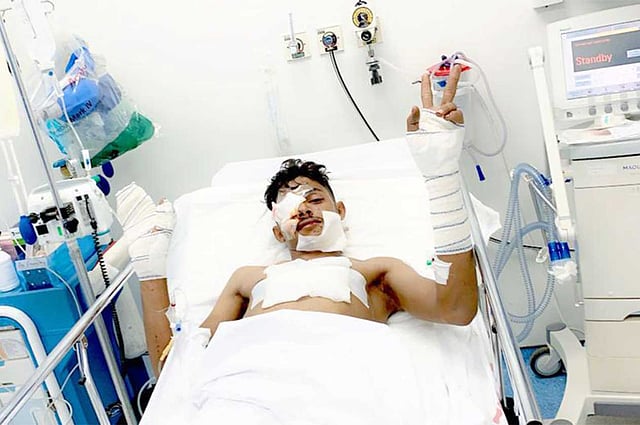 وقدم والد المصاب شكره وتقديره على الرعاية الطبية التي اتخذتها الجهات المختصة مع ابنه البطل، وأن هذا يؤكد حرص حكومة خادم الحرمين الشريفين الملك سلمان بن عبد العزيز، وسمو ولي عهده الأمين وزير الدفاع الأمير محمد بن سلمان بن عبد العزيز، واهتمامهم بأبنائهم المرابطين في الحد الجنوبي من كافة القطاعات العسكرية والأمنية، وتقديم الرعاية الفائقة لهم بما فيها العناية الطبية اللازمة .