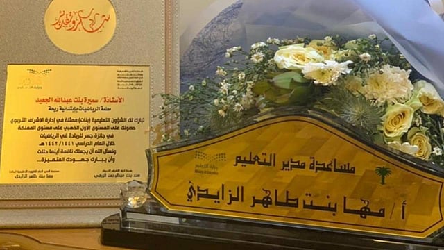 كرمت مساعدة المدير العام للشؤون التعليمية (بنات) مها بنت طاهر الزايدي، اليوم الخميس، في مكتبها المعلمة سميرة بنت عبدالله الجعيد بابتدائية ريحة التابعة لمكتب التعليم بالحوية؛ لحصولها على المستوى الأول الذهبي على مستوى المملكة بجائزة جسر للريادة في الرياضيات.