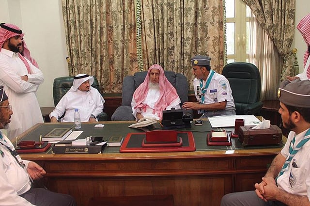 استقبل المفتي العام للمملكة، رئيس هيئة كبار العلماء، الرئيس العام للبحوث العلمية والإفتاء عبدالعزيز بن عبدالله آل الشيخ، بمقر إقامته بمكة المكرمة، اليوم الأربعاء، المُشرف العام على معسكرات الخدمة العامة بمكة والمشاعر المقدسة والمدينة المنورة والمنافذ الدكتور عبدالله بن سليمان الفهد، وقائد عام المعسكرات بمكة المكرمة والمشاعر المقدسة الدكتور صالح بن رجاء الحربي، وعددًا من القيادات الكشفية والكشَّافة.