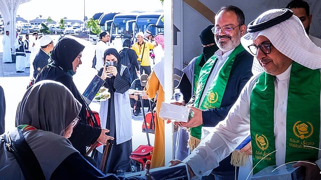 تم استقبال ضيوف الرحمن على أولى رحلات الحج بحضور مدير عام مجموعة الخطوط السعودية المهندس إبراهيم بن عبدالرحمن العُمر، حيث رحب بهم متمنياً لهم حجاً مبروراً، منوها بأن جميع الخدمات النوعية في جميع مواقع الخدمة التي يتم تقديمها لضيوف الرحمن تتواكب مع توجيهات القيادة بتوفير كل ما من شأنه التيسير على حجاج بيت الله الحرام ليؤدوا نسكهم بكل طمأنينة.