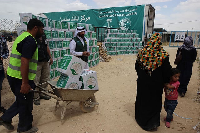 وزَّع فرع مركز الملك سلمان للإغاثة والأعمال الإنسانية في الأردن، ضمن محطته الرابعة التي تستهدف مخيمات اللجوء بالأردن، 3167 سلة غذائية رمضانية على الأشقاء السوريين في مخيمي الأزرق والزعتري .