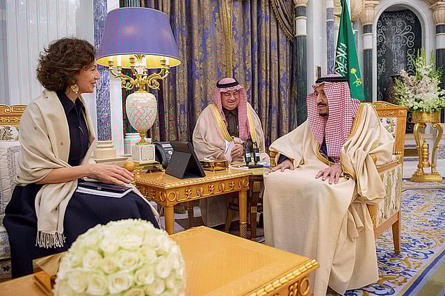 استقبل خادم الحرمين الشريفين الملك سلمان بن عبدالعزيز، اليوم الخميس، المديرة العامة لمنظمة الأمم المتحدة للتربية والعلم والثقافة (يونسكو) أودري أزولاي.