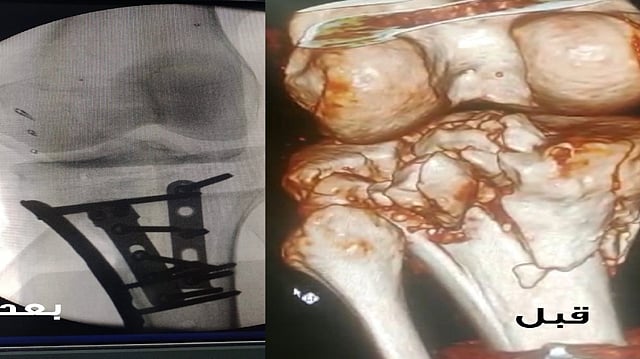 وأضافت صحة الجوف، أنه بعد تشخيص الحالة واستكمال الفحوصات المخبرية والإشعاعية اللازمة، تقرر إجراء تدخل جراحي لتثبيت الكسر، عن طريق فتح خلف الركبة بعد عزل الأوردة والشرايين والأعصاب الخلفية للركبة.