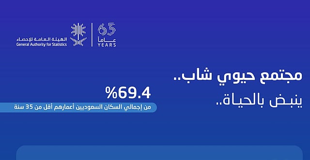 وتشير البيانات الإحصائية الصادرة من الهيئة العامة للإحصاء أن نسبة إجمالي السكان السعوديين (أقل من 35 سنة) 69.4%. من إجمالي السكان السعوديين عام 2024. كما بلغت نسبة الشباب السعودي (15-34 سنة) 35.9 % من إجمالي السكان السعوديين للعام نفسه، حيث بلغت نسبة الذكور منهم 50.3% في مقابل ما نسبته 49.7 % للإناث، فيما بلغت نسبة السكان الذين أعمارهم أقل من 35 سنة 61.4%. من إجمالي السكان عام 2024.