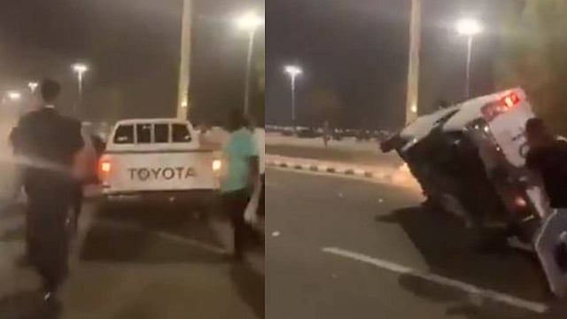 وثق مقطع فيديو متداول عبر مواقع التواصل الاجتماعي انقلاب مركبة مفحط في أحد المناطق بالمملكة..وظهر خلال المقطع محاولة مجموعة من الشبان إنقاذ قائد المركبة بعد انقلابها، والذي فر هاربا من الموقع قبل وصول دوريات المرور..اقرأ أيضا:.نشل وسطو على المنازل والمركبات.. شرطة مكة تطيح بمقيم ارتكب 19 جريمة سرقة بجدة