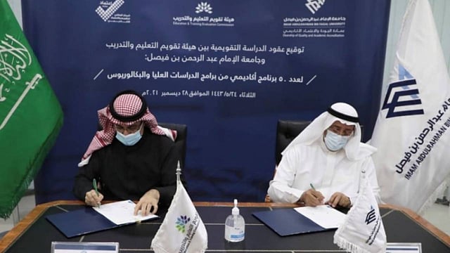 وقع رئيس مجلس إدارة هيئة تقويم التعليم والتدريب الدكتور خالد السبتي، ورئيس جامعة الإمام عبدالرحمن بن فيصل الدكتور عبدالله الربيش، اليوم، مذكرة تفاهم بين الهيئة ممثلة في المركز الوطني للقياس والجامعة، وذلك بمقر الجامعة بالدمام.