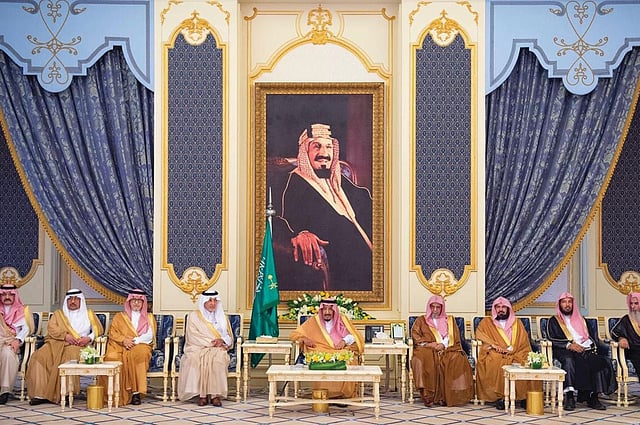 وبحسب وكالة الأنباء السعودية، أنصت الجميع في بداية الاستقبال، لتلاوة آيات من القرآن الكريم، ثم تشرف الحضور بالسلام على خادم الحرمين الشريفين، وذلك بحضور الأمير خالد الفيصل بن عبدالعزيز مستشار خادم الحرمين الشريفين، أمير منطقة مكة المكرمة، والأمير فهد بن عبدالله بن محمد، والأمير الدكتور خالد بن فيصل بن تركي وكيل وزارة الحرس الوطني للقطاع الغربي، والأمير مشعل بن ماجد بن عبدالعزيز محافظ جدة.