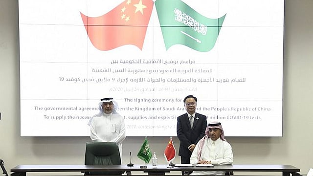 وقّعت الحكومة السعودية عقدًا مع جمهورية الصين اليوم الأحد، بقيمة 995 مليون ريال سعودي لتوفير 9 ملايين فحص لتشخيص فيروس كورونا المستجد (كوفيد - 19) لتسعة ملايين شخص في المملكة، شاملة جميع الأجهزة والمستلزمات، وعدد 500 من الأخصائيين والفنيين الصينيين المتخصصين في الفحوصات.
