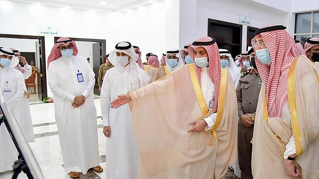 ولدى وصوله مقر الحفل المعد بهذه المناسبة في المركز الحضاري، أزاح الستار عن اللوحة التذكارية إيذانًا بافتتاح المركز، وافتتح مشروعات لوزارات (التعليم، والشؤون البلدية والقروية، والبيئة والمياه والزراعة، والشؤون الإسلامية والدعوة والإرشاد) وهيئة الأمر بالمعروف، وشركة الكهرباء، وجمعية البر الخيرية، وشاهد عرضًا مصورًا للمشروعات الجديدة.