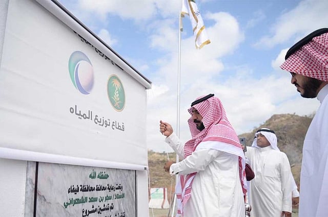 واستمع المحافظ والحضور إلى شرح عن مشروع شبكات المياه وخزانات قرى محافظة فيفاء الواقع بالهيجة والكوابسة وقراها، الذي يشتمل على شبكات رئيسة وفرعية بطول 35.7 كيلومتر، وخزان أرضي سعة 1000 متر مكعب، و225 توصيلة منزلية.