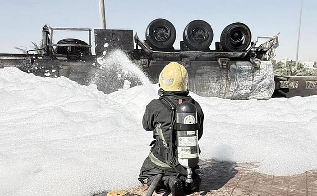 وانتقلت فرق الدفاع المدني على الفور إلى موقع الحادث عقب تلقي البلاغ حيث باشرت عمليات الإطفاء والسيطرة على الحريق الذي شب في ناقلة الوقود، وتمكنت الفرق من السيطرة على الحريق ومنع امتداده إلى مركبات أخرى أو المناطق المحيطة.