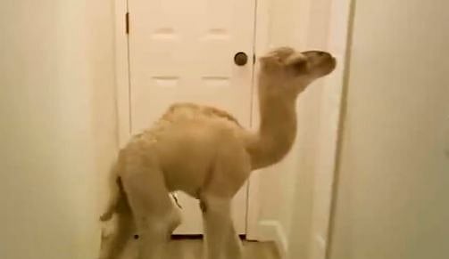 أظهر مقطع فيديو جملا صغيرا يمشي يتبختر داخل منزل في السعودية، في مشهد خطف الأنظار.