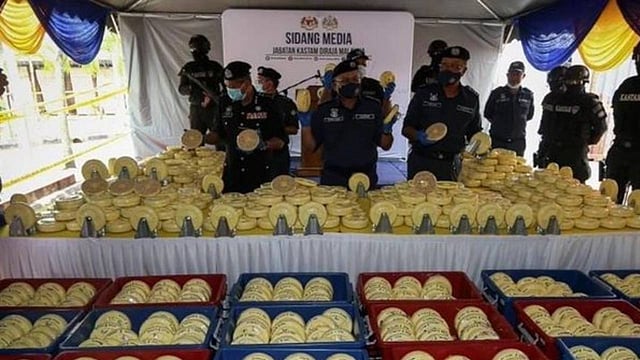 تمكنت إدارة الجمارك الملكية الماليزية من ضبط 94.8 مليون حبة كبتاغون وزنها 16 طنًّا تحتوي على أمفيتامين، وتقدر قيمتها بحوالي 5.2 مليارات رنجت ماليزي، ومصادرتها في 15 مارس الجاري.