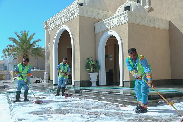 وشملت التهيئة إجراءات النظافة والتعقيم والصيانة الكهربائية وأجهزة التكييف وأجهزة الصوتيات من جهاز التحكم إلى السماعات الداخلية والخارجية، إضافة إلى الأعطال الخاصة بالأدوات الصحية، وإزالة التشوهات البصرية من الجوامع والمساجد، وإزالة النباتات الضارة وغير المفيدة من المصليات المكشوفة بالتعاون مع البلديات في المحافظات، وذلك استعدادًا للعيد.