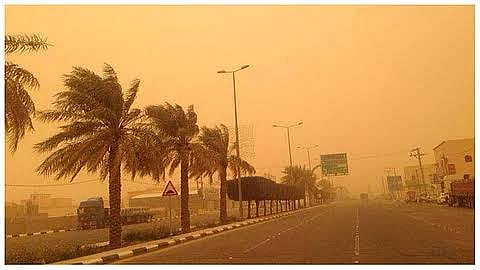 وفي الخليج العربي، تكون الرياح السطحية شمالية غربية إلى غربية بسرعة 13–25 كم/ساعة، وارتفاع الموج من نصف المتر إلى متر، وحالة البحرخفيف الموج.