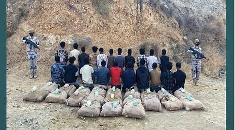 ألقت الدوريات البرية لحرس الحدود في قطاع الدائر، بمنطقة جازان، القبض على 21 مخالفًا لنظام أمن الحدود من الجنسية الإثيوبية، لتهريبهم 420 كيلوجراما من نبات القات المخدر.