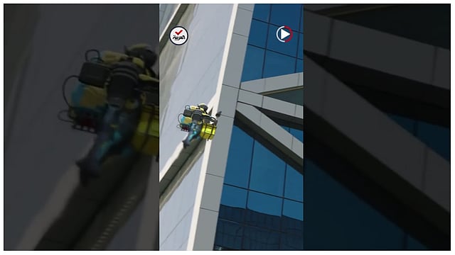 تداول مستخدمو وسائل التواصل الاجتماعي، مقطع فيديو، يوثق عامل توصيل يطير لتوصيل طلبية إلى أحد الأبراج في المملكة العربية السعودية.