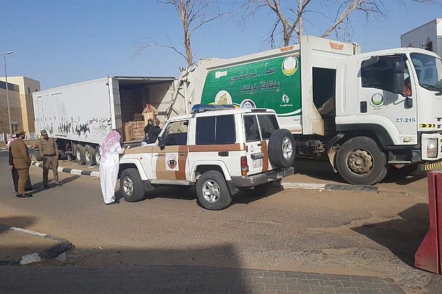 ضبطت أمانة منطقة تبوك وبالتعاون مع شرطة المنطقة مستودعًا متنقلًا (براد) يحتوي على (٨٠٤) صناديق تزن أكثر من (١٠) آلاف كجم من المواد الغذائية منتهية الصلاحية. =