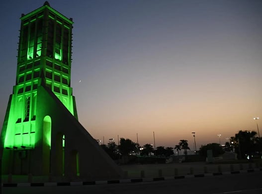 بمناسبة اليوم الوطني الـ93 للمملكة.. المنطقة الشرقية تتوشح باللون الأخضر