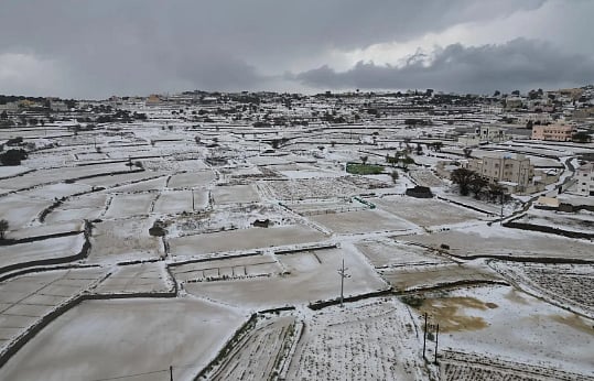 ورصدت عدسة "واس" مناظر الحقول الزراعية والمنازل القديمة بعد أن غطتها طبقة من البَرَد، حيث تبدو المزارع محاطة بالجدران الحجرية وقد اكتسبت لونًا أبيض.