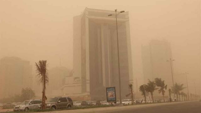 بينما تكون حركة الرياح السطحية على الخليج العربي شرقية إلى جنوبية شرقية بسرعة 16-40 كم/ ساعة، وارتفاع الموج من متر إلى مترين، وحالة البحر متوسط الموج.