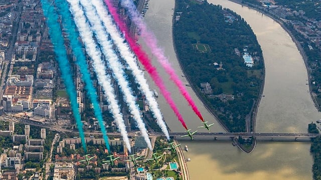 قدمت الصقور السعودية، مساء الأربعاء، عرضاً جوياً في سماء بودابست، حظى باهتمام واستحسان المواطنين المجريين، فضلًا عن ردود أفعال السياح الأجانب في المدينة.