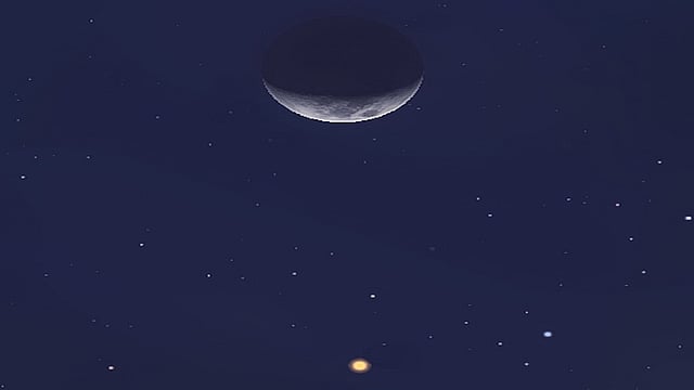 وأضاف أنَّ حوالي ربع القمر سيظهر مضاءً، ويبلغ اللمعان الظاهري للمريخ (1.5) لذا سيكون القمر أكثر إشراقًا من المريخ، وسيلاحظ أنَّ الكوكب الأحمر أصبح خافتًا الآن مقارنة بأكتوبر العام الماضي، عندما كان في التقابل- أقرب نقطة له من الأرض- ذلك لأنَّ المريخ يبعد الآن ضعف المسافة من الشمس، ومع ذلك فإنَّه لا يزال مرئيًا للعين المجردة وهو الكوكب الوحيد الذي يرصد في سماء المساء هذا الشهر.
