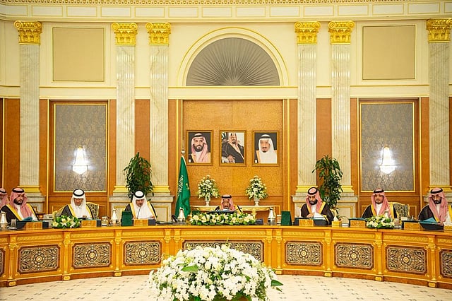 رأس خادم الحرمين الشريفين الملك سلمان بن عبدالعزيز، اجتماع مجلس الوزراء، اليوم الثلاثاء، في قصر السلام بجدة، وأعلن وزير الإعلام تركي بن عبدالله الشبانة، أن الملك رحب في بداية الجلسة بانضمام الأمير عبدالعزيز بن سلمان، وزير الطاقة، إلى المجلس، متمنيًّا له التوفيق والسداد، وأن المجلس اعتمد القرارات التالية: