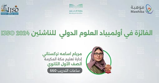 وحققت الميدالية الطالبة مريام أسامة تركستاني، من تعليم مكة المكرمة، ليرتفع رصيد المملكة في هذا الأولمبياد الدولي إلى 28 ميدالية, منها 24 برونزية، و3 فضيات، وذهبية واحدة.