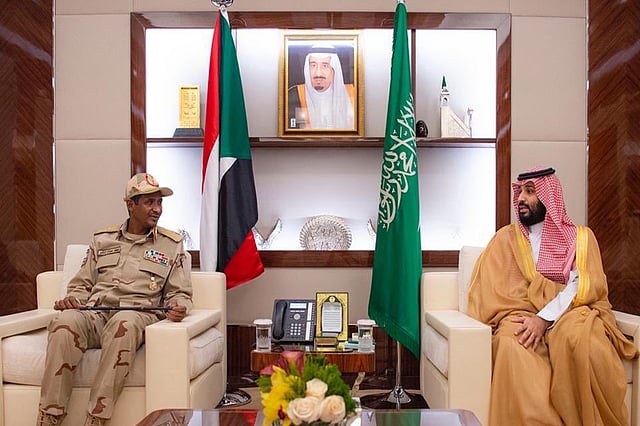 التقى الأمير محمد بن سلمان، ولي العهد نائب رئيس مجلس الوزراء وزير الدفاع، في جدة، مع نائب رئيس المجلس الانتقالي السوداني الفريق أول محمد حمدان دقلو.