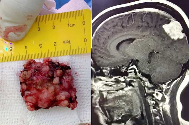 كما أنقذ أطباء المستشفى، سيدة ثلاثينية من ورم بالمخ، بعد تزايد معاناتها من نوبة صداع حاد لازمتها، وبالكشف عليها وإجراء الفحوصات الإشعاعية تبين وجود كتلة متصلة بالوريد عبارة عن ورم يحيط بالمخ بقطر أربعة سنتيمترات، استوجب سرعة التدخل الجراحي لاستئصاله من قبل أطباء جراحة المخ والأعصاب بالمجمع؛ وبعد الجراحة الناجحة غادرت المريضة بعد أيام المستشفى وهي بصحة وعافية .
