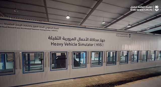 يُعد جهاز محاكاة الأحمال المرورية الثقيلة، التابع للمركز السعودي لأبحاث الطرق واختبارات الرصف المتعجلة (سرابتك)، أداة بحثية متقدمة تحاكي بشكل كامل الظروف التشغيلية التي يتعرض لها الطريق في الواقع، من خلال تنفيذ عينة من الطريق المستهدف وتعريضها للأحمال المرورية والظروف المناخية والجيولوجية وخصائص المواد ذاتها داخل المركز.
