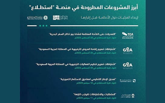 طرحت المنصة الإلكترونية الموحدة لاستطلاع آراء العموم والجهات الحكومية (منصة استطلاع) التابعة للمركز الوطني للتنافسية، 67 مشروعًا ذا صلة بالشأن الاقتصادي والتنموي، بالتعاون مع 18 جهة حكومية؛ لتمكين أصحاب المصلحة، من إبداء المرئيات والمقترحات حولها قبل إقرارها.