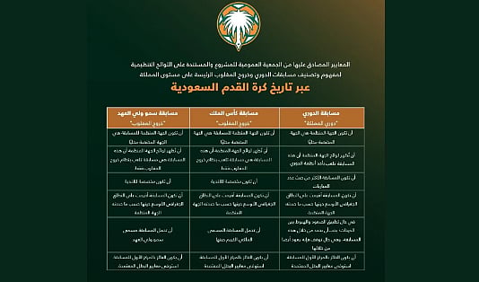 وتوصل فريق العمل أن الموسم الرياضي 1957 / 1958 هو انطلاقة الدوري السعودي (دوري المملكة)، وبذلك تكون نسخة الموسم الرياضي الحالي من الدوري السعودي للمحترفين "دوري روشن" هي النسخة رقم 68 على مدى التاريخ (منها 63 نسخة اكتملت وتحدد أبطالها إضافة إلى النسخة الحالية، وتوقفت 4 نسخ، ولم تستكمل لأسباب مختلفة)، إضافة إلى ما رصده فريق العمل من المسابقات التي أقيمت على مختلف الدرجات التصنيفية والجغرافية بأنظمة الدوري وخروج المغلوب خلال تاريخ كرة القدم السعودية.
