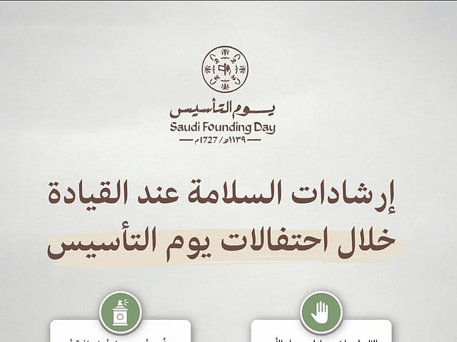 قدمت الإدارة العامة للمرور عددا من إرشادات السلامة عند القيادة خلال احتفالات يوم التأسيس.