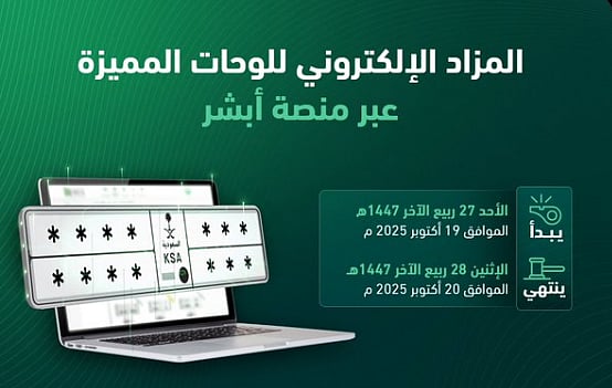 وبينت الإدارة العامة عبر منصة (إكس)، أن المزاد يتم طرحه عن طريق منصة أبشر التي تمكّن الراغبين في شراء اللوحات المميزة من المشاركة في المزاد إلكترونيًا.