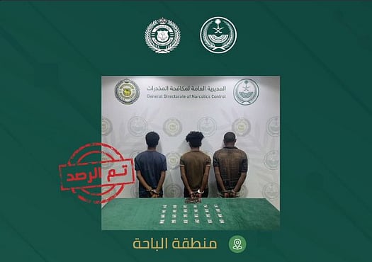 أعلنت المديرية العامة لمكافحة المخدرات، القبض على (3) مخالفين لنظام أمن الحدود من الجنسية الإثيوبية بمنطقة الباحة، لترويجهم مادتي الحشيش والإمفيتامين المخدرتين، مشيرة إلى إيقافهم واتخاذ الإجراءات النظامية بحقهم، وإحالتهم إلى النيابة العامة.