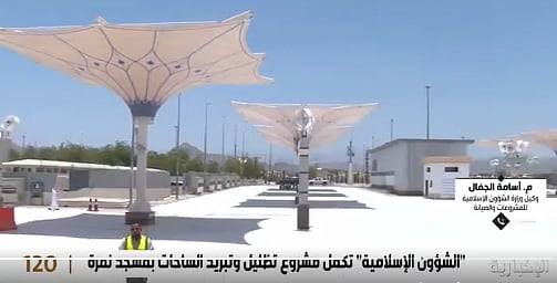 وأضاف «الجفال»، في تصريحات عبر قناة «الإخبارية»، أن «مشروع تظليل وتبريد ساحات مسجد نمرة يسهم في تخفيض درجات الحرارة إلى 19 درجة مئوية».