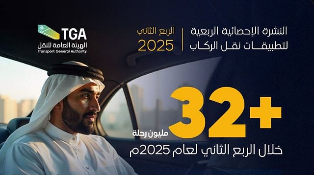 كشفت الهيئة العامة للنقل، اليوم، عن عدد الرحلات المنفذة عبر تطبيقات نقل الركاب، التي بلغت أكثر من 32 مليون رحلة خلال الربع الثاني من عام 2025، مسجلة ارتفاعًا بلغ 104% مقارنة بالربع المماثل من العام الماضي.