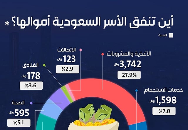 يأتي ذلك فيما جاء حجم الانفاق على الفنادق بالنسبة للأسر في المملكة 178 ريال، بنسبة 3.6٪، أما فيما يخص الملابس 653 ريال، بنسبة 5.6٪، وجاء حجم الانفاق على التعليم 9.6٪.