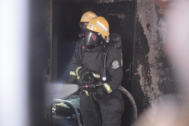 أخمد الدفاع المدني في جدة، حريقًا محدودًا في غرفة بمبنى سكني في حي الراية.