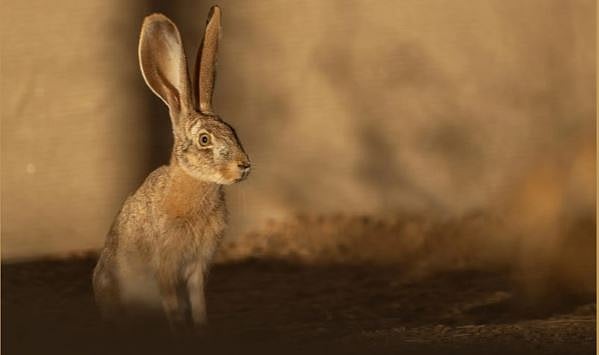 وعلى عكس العديد من الأنواع الصحراوية التي تلجأ إلى الجحور تحت الأرض هربًا من درجات الحرارة المرتفعة، يتميز الأرنب العربي، المعروف أيضًا باسم "أرنب الصحراء"، بقدرته الفريدة على التكيف مع الحياة فوق سطح الأرض، وهو من بين قلة من الثدييات القادرة على تحمّل درجات الحرارة القصوى دون الحاجة إلى الحفر، كما يوفر لونه الفريدًا تمويهًا فعالًا يقلل من فرص رصده من قبل المفترسات، كما تؤدي أذناه الكبيرتان، اللتان قد يصل طولهما إلى 17 سنتيمترًا، أي ما يعادل 30% من طول جسمه، دورًا محوريًا في تنظيم حرارة الجسم، إضافة إلى توفير حاسة سمع فائقة، إذ تستطيع أذناه الدوران بشكل مستقل، وإلى جانب مجال رؤية شبه دائري يصل إلى نحو 360 درجة، تمكّن هذه الخصائص الأرنب العربي من رصد المفترسات في وقت مبكر، وعند التعرض للخطر، يمكنه الانطلاق بسرعات تصل إلى 80 كيلومترًا في الساعة، مع تغيير اتجاهه بشكل متعرج وسريع لتفادي المطاردة، ورغم هذه التكيفات الدفاعية، قد تصل معدلات الافتراس في البيئات الصحراوية إلى نحو 90%؛ مما يبرز الأهمية المحورية للأرنب العربي بوصفه فريسة أساسية في النظام البيئي.